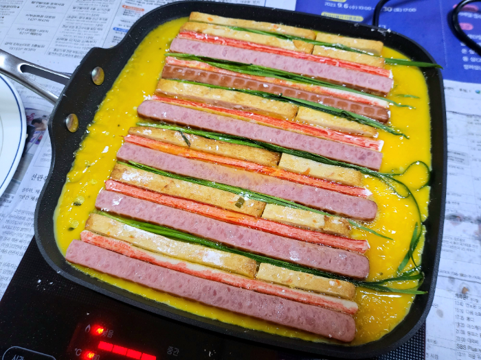 * 꼭 저와 같은 사각 프라이팬이 없더라도 넓은 프라이팬이나 전 굽는 넓은 요리팬을 이용해서도 조리 가능하세요.