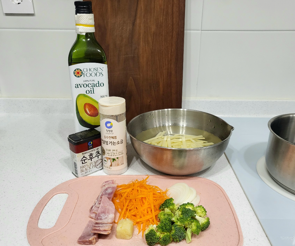 그럼 지금부터 베이컨! 브로콜리! 감자채볶음 만들어 보실까요~!
