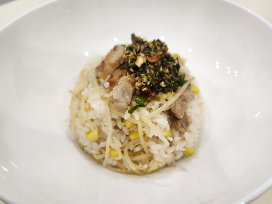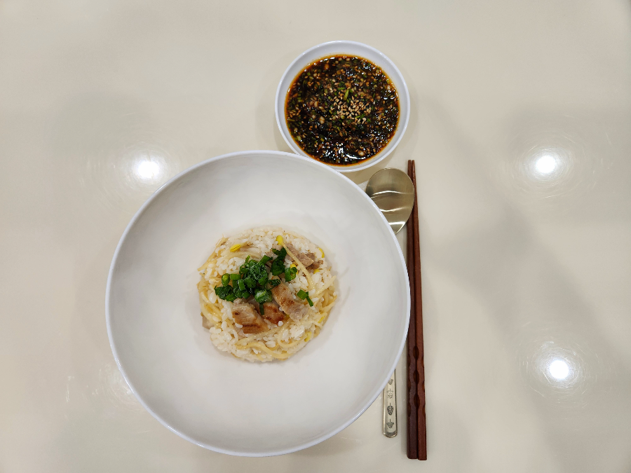 저는 삼겹콩나물밥을 해서 양념장을 비벼 먹었어요.