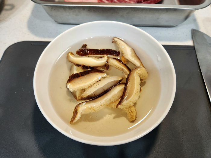 1. 가장 먼저, 씻은 쌀 2컵과 말린 표고 양을 30분간 물에 불려줍니다.
