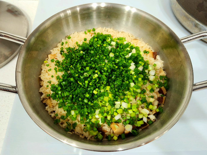 쪽파 넣고 뚜껑 닫은 채로 5분 추가 뜸 들이기