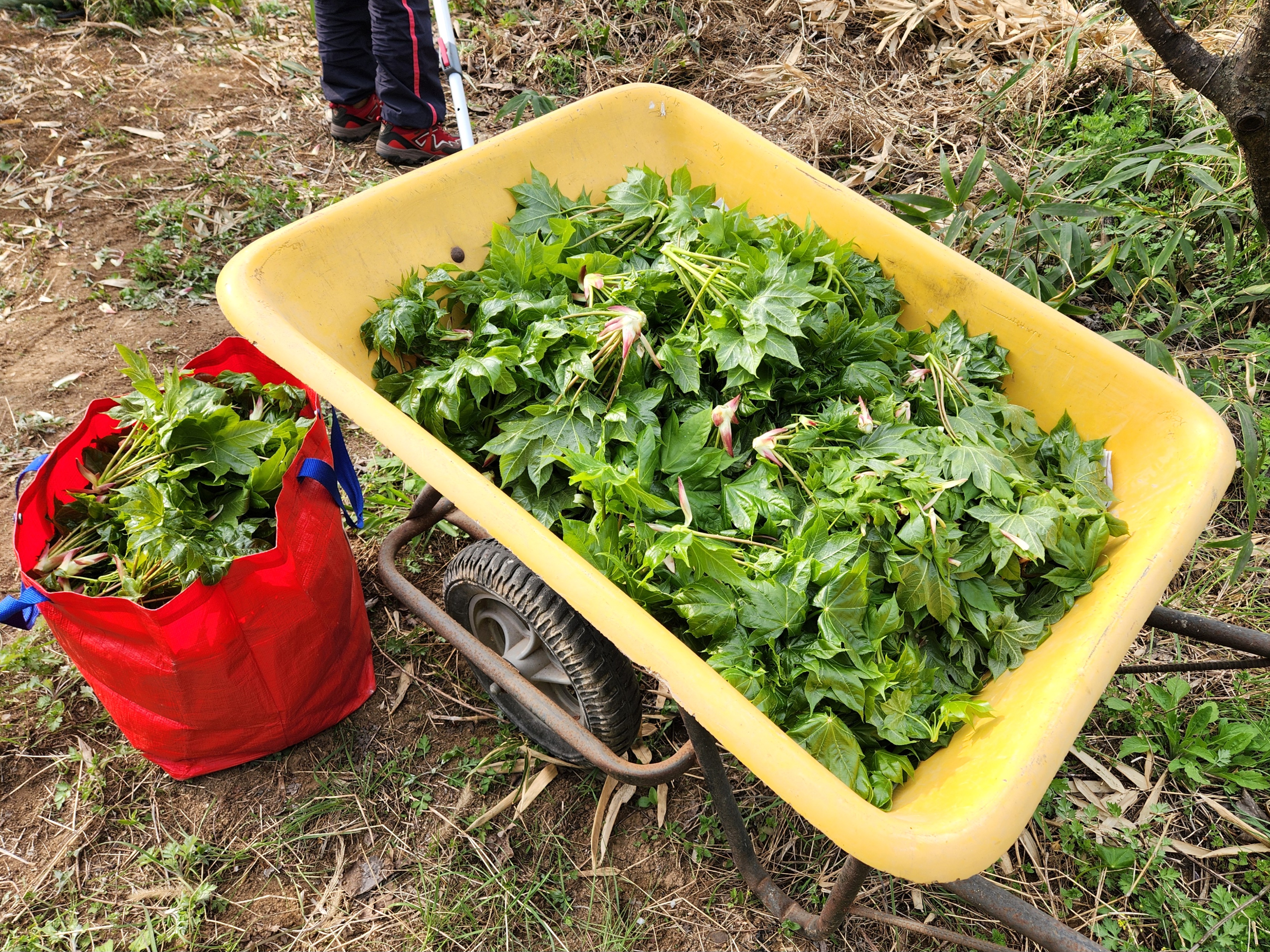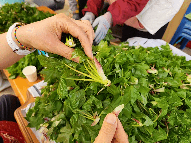 나무에 매달린 순을 따기가 쉽지 않아서 더 오래 걸렸던 것 같아요.