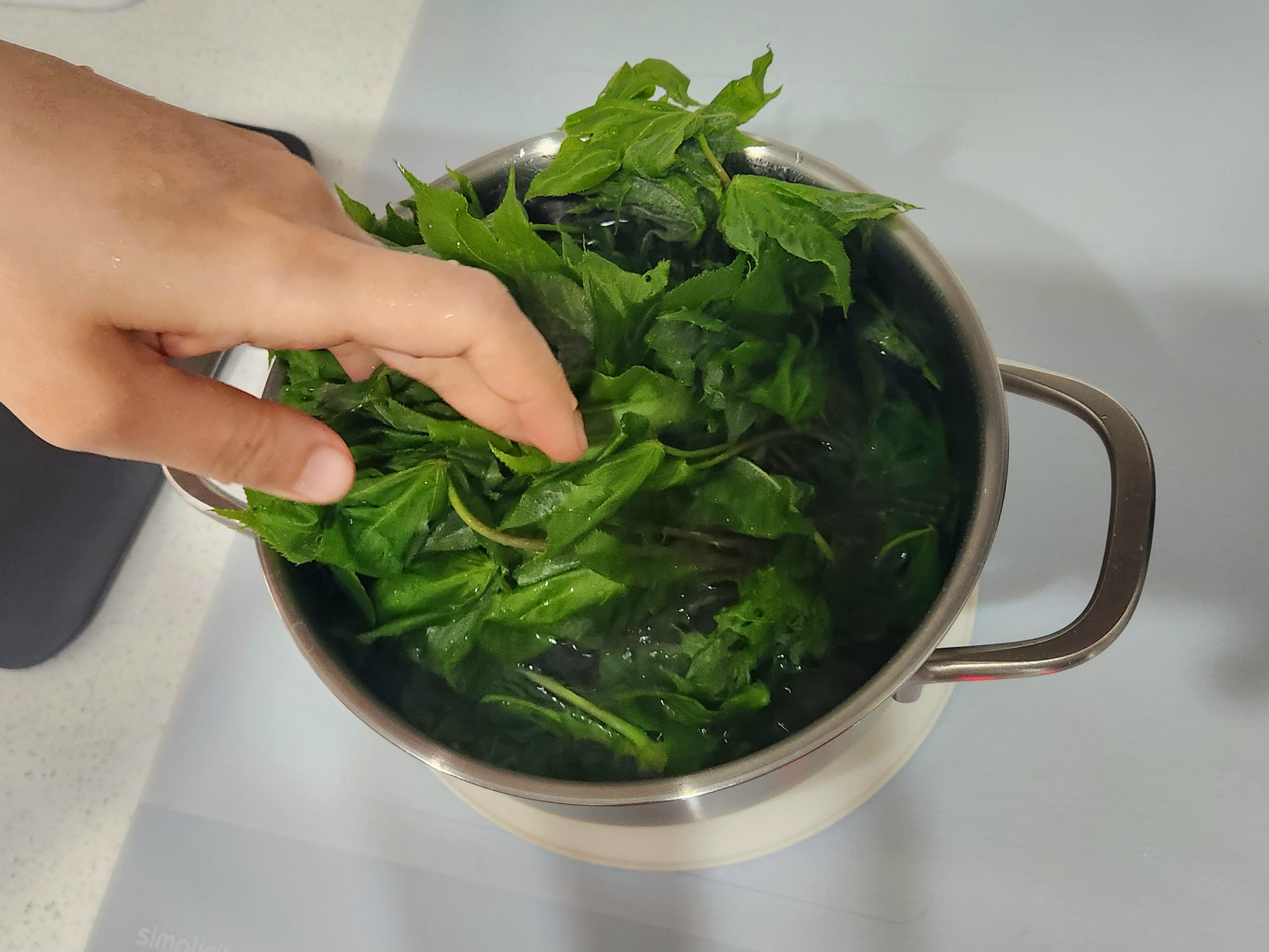 가장 보편적인 방법인, 끓는 물에 데치기를 추천드립니다.