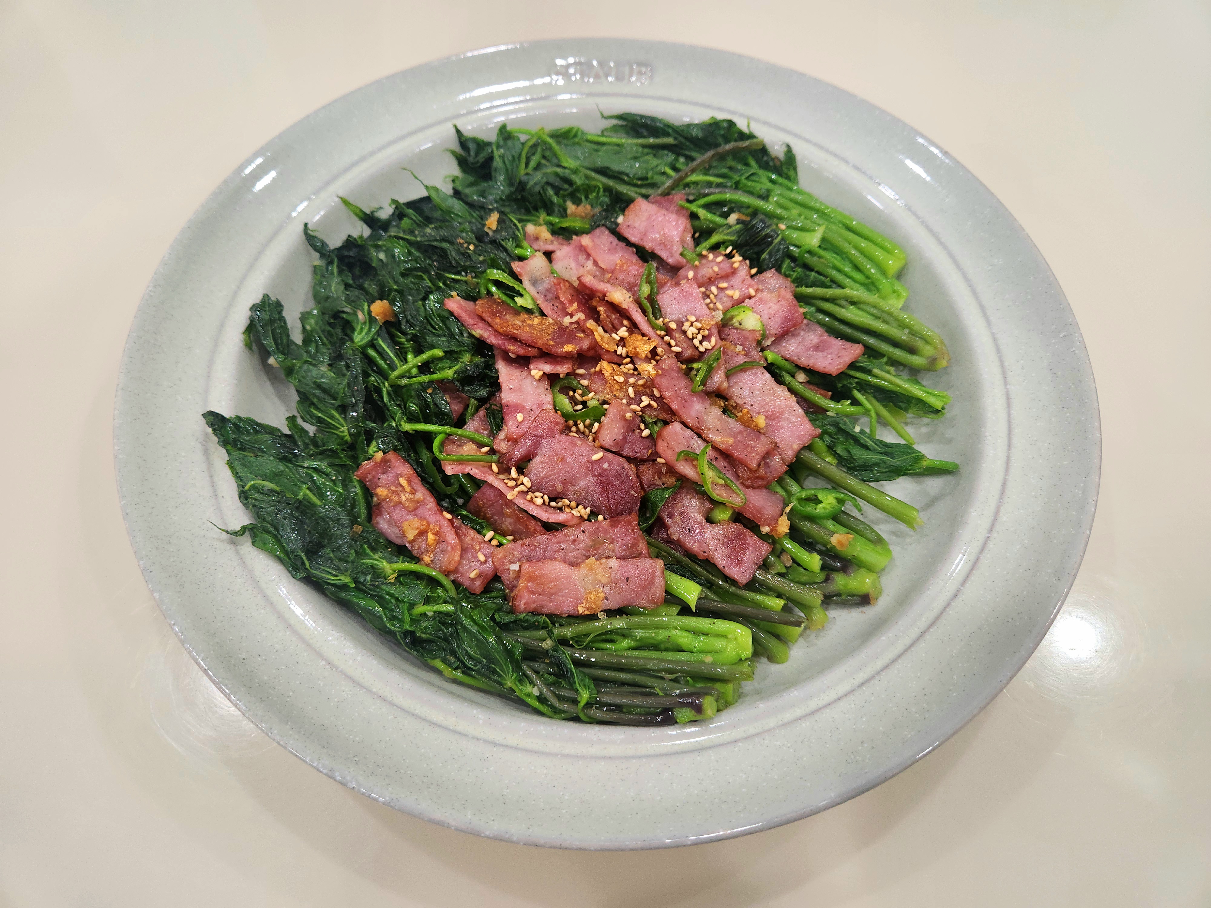 짜지 않고, 고소 쌉싸름한 개두릅 나물 베이컨 볶음