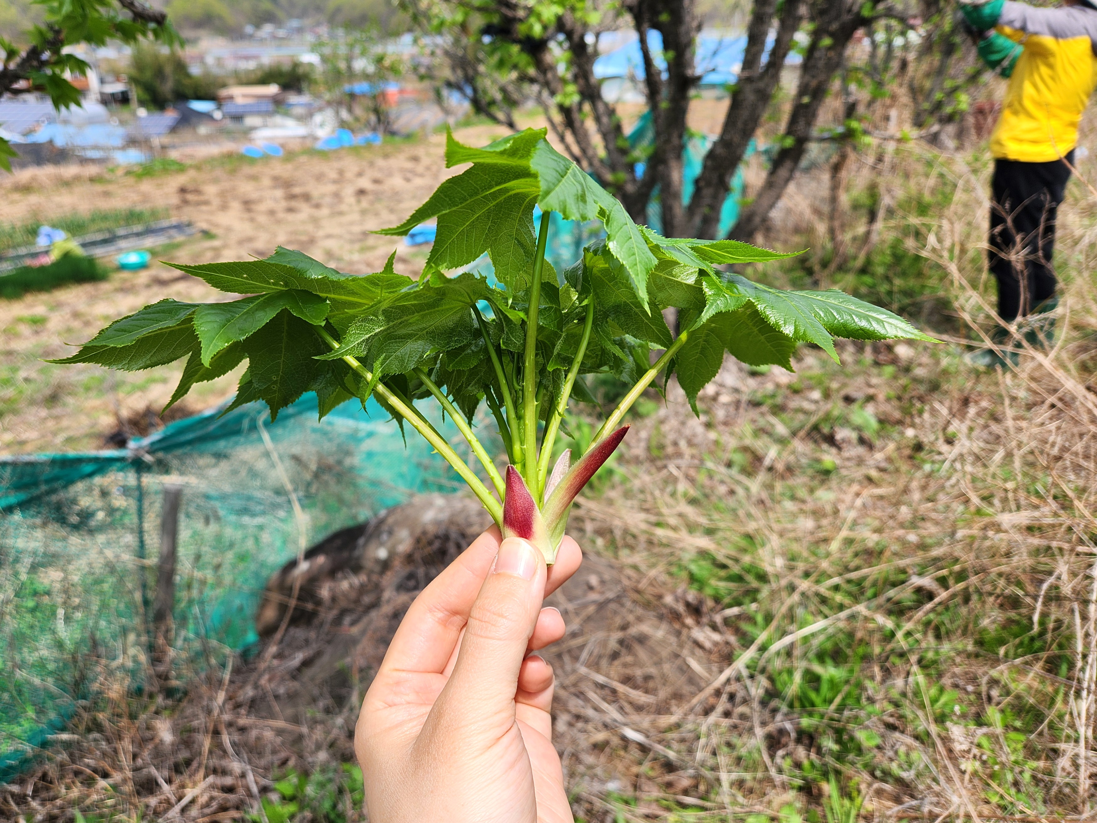 시골 밭에서 직접 엄나무순을 따 왔어요.