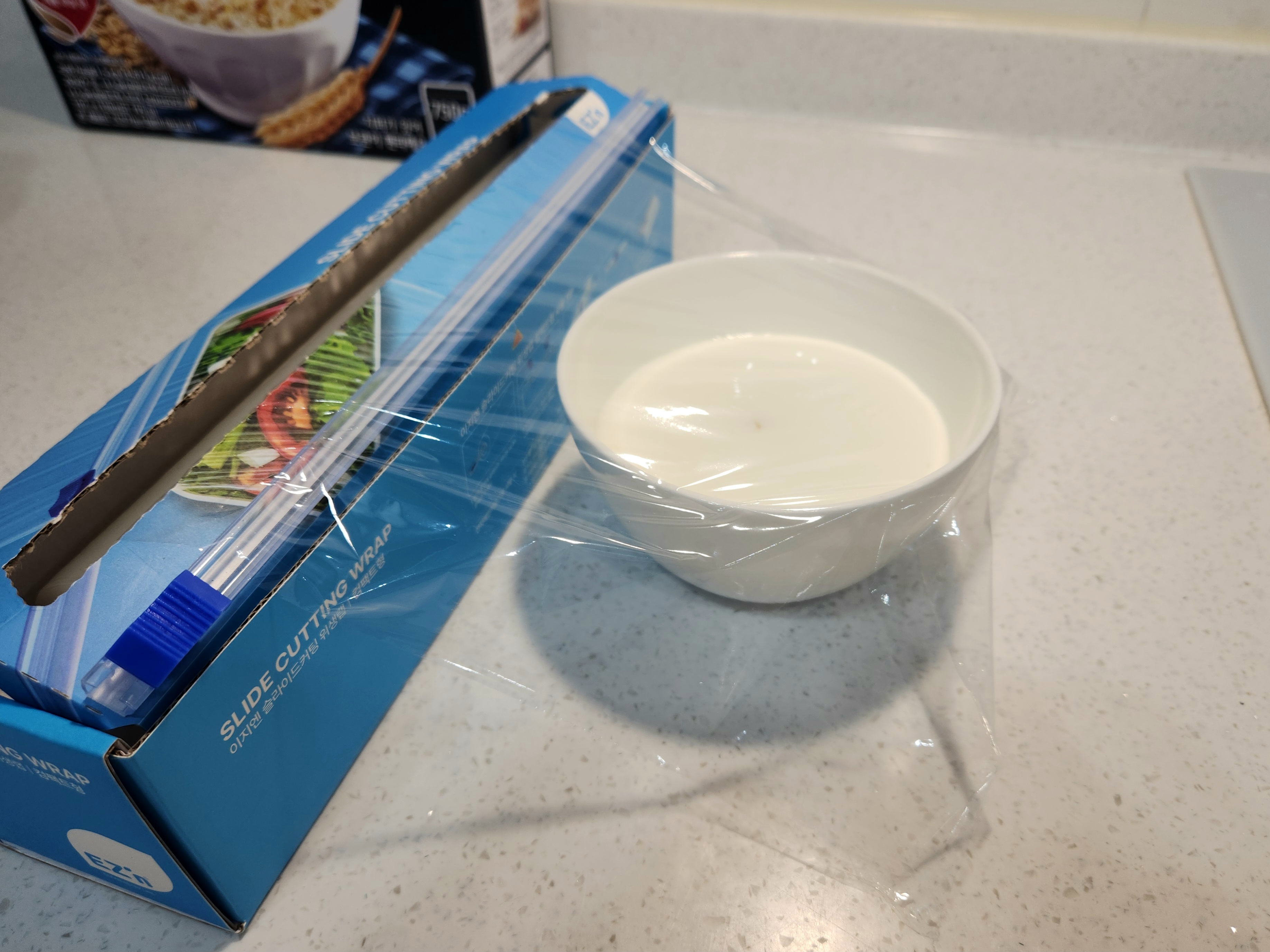 3. 비닐랩으로 그릇을 덮고, 냉장고에 보관합니다.