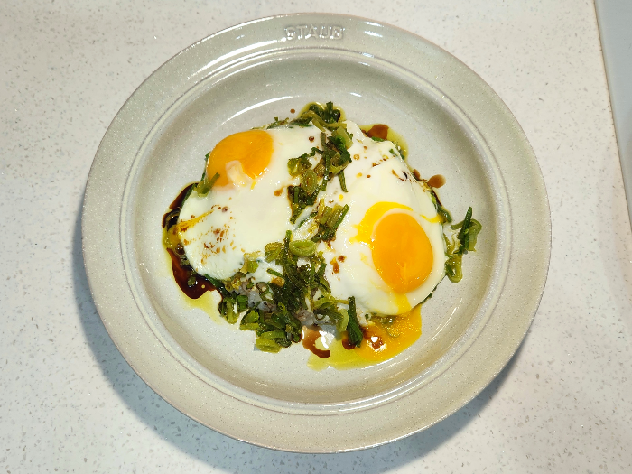파향 들기름향 머금은 달걀프라이 얹기.