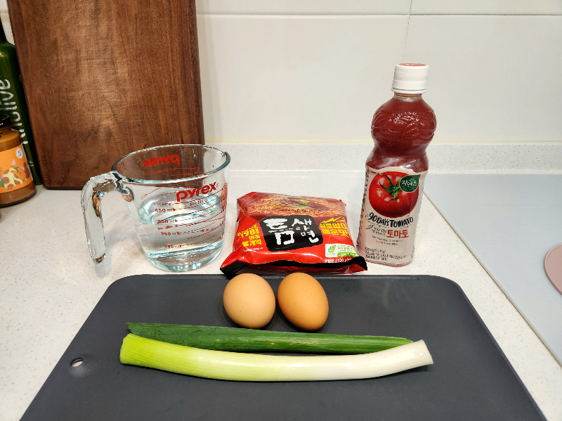 기존 토마토라면 레시피 자체에 호불호가 크게 갈리더라고요~그래서 토마토주스의 비율을 낮추고강한 매운맛의 라면을 이용해 조리해 보았어요!